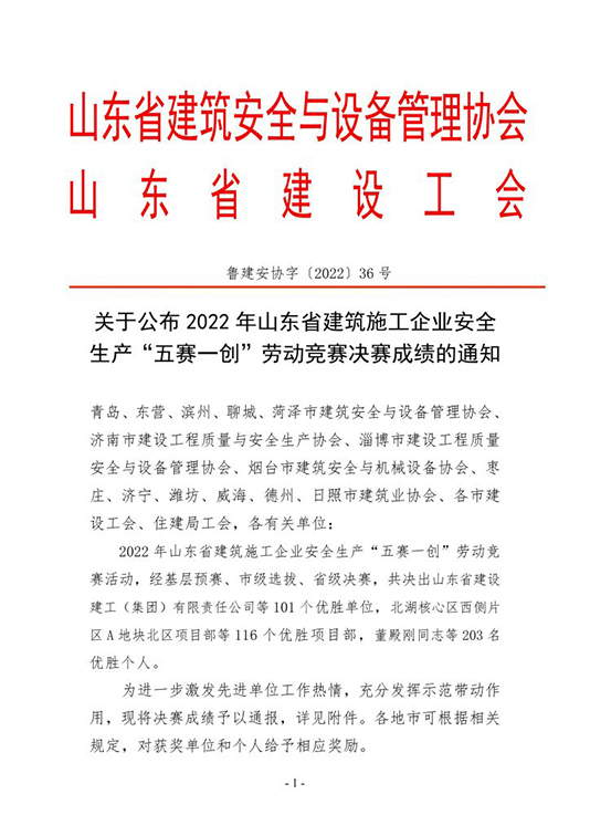 經(jīng)過(guò)預(yù)賽、市級(jí)選拔、省級(jí)決賽,山東天華建筑安裝有限公司成功榮獲“山東省建筑施工企業(yè)安全生產(chǎn)‘五賽一創(chuàng)’勞動(dòng)競(jìng)賽優(yōu)勝單位”稱(chēng)號(hào)。