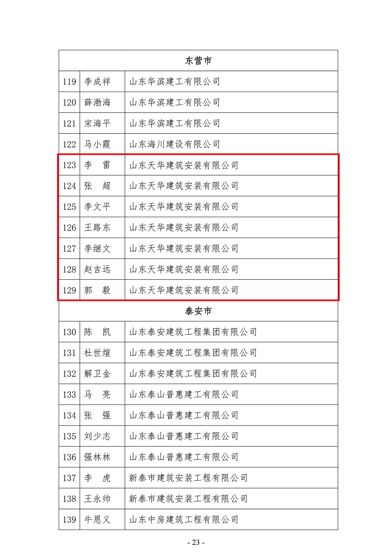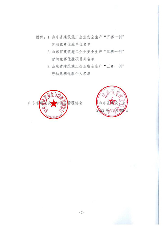 李雷、張超、李文平、王路東、李繼文、趙吉遠(yuǎn)、郭毅榮獲“山東省建筑施工企業(yè)安全生產(chǎn)‘五賽一創(chuàng)’勞動(dòng)競(jìng)賽優(yōu)勝個(gè)人”稱(chēng)號(hào)。