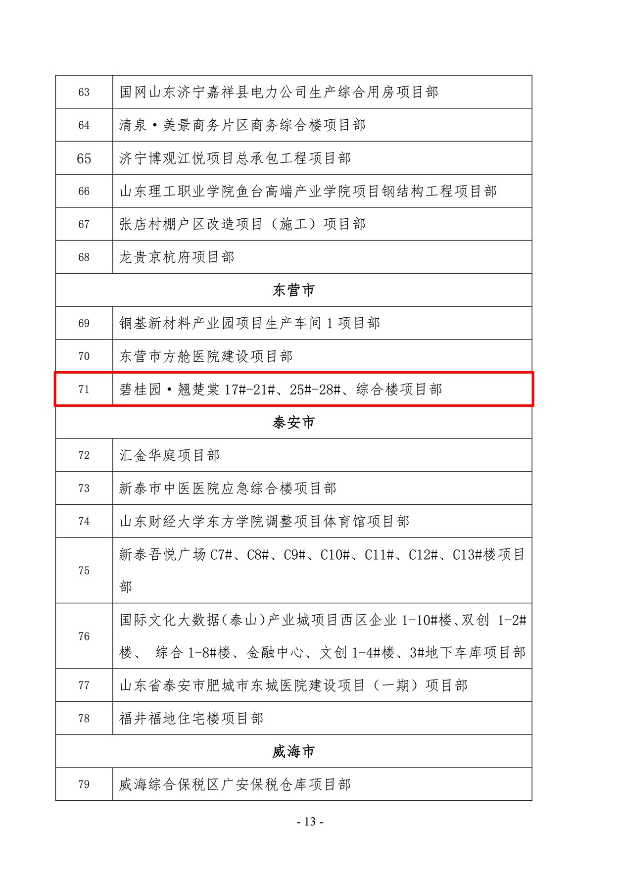 碧桂園·翹楚棠17#-21#、25#-28#、綜合樓項(xiàng)目部榮獲“山東省建筑施工企業(yè)安全生產(chǎn)‘五賽一創(chuàng)’勞動(dòng)競(jìng)賽優(yōu)勝項(xiàng)目部”稱(chēng)號(hào)。