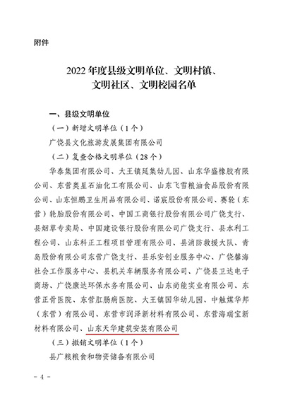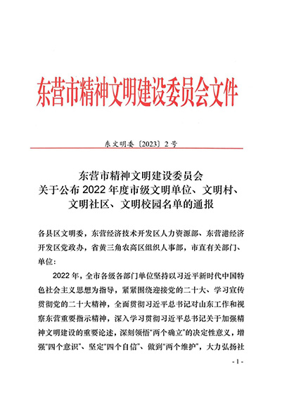 近日,東營市和廣饒縣精神文明建設(shè)委員會相繼下發(fā)表彰文件,天華實業(yè)集團榮獲2022年度東營市級、廣饒縣級文明單位榮譽稱號,這標志著集團精神文明建設(shè)工作邁上新的臺階。