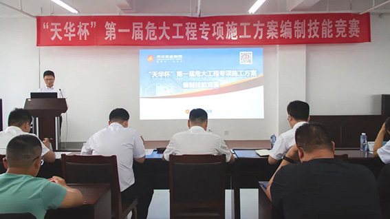 5月27日,天華實業(yè)集團第一屆危大工程專項施工方案編制技能競賽在集團公司成功舉辦。集團副總經理徐帥菊、安全總監(jiān)商雷雷、評委組和參賽選手等共同參加本次活動。本次競賽由工程部李繼文主持。