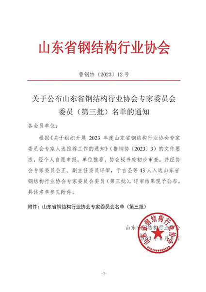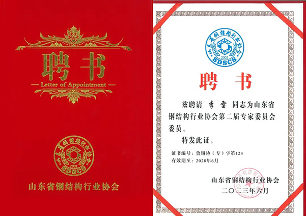 近日,山東省鋼結(jié)構(gòu)行業(yè)協(xié)會召開了2023年度山東省鋼結(jié)構(gòu)行業(yè)協(xié)會專家評審會,根據(jù)《山東省鋼結(jié)構(gòu)行業(yè)協(xié)會章程》和相關(guān)文件規(guī)定評審,經(jīng)過名單公示,天華實業(yè)集團李雷成功入選山東省鋼結(jié)構(gòu)行業(yè)協(xié)會專家委員會(第三批)。