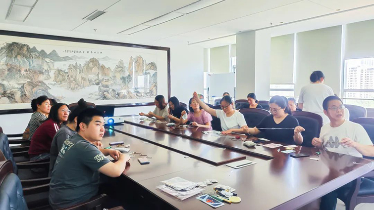 隨后,職工們來到會議室,親手制作香囊。端午節(jié)制香囊是我國傳統(tǒng)民俗,佩戴用艾草、香草等中草藥填充的香囊可以避邪驅(qū)瘟,抵抗毒蟲侵?jǐn)_。