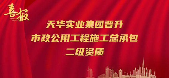 近日,經(jīng)山東省住房和城鄉(xiāng)建設(shè)廳核準(zhǔn),天華實(shí)業(yè)集團(tuán)市政公用工程總承包資質(zhì)成功晉升為二級(jí),這是我司發(fā)展歷程中的一大里程碑,對(duì)于公司的發(fā)展具有重要意義。