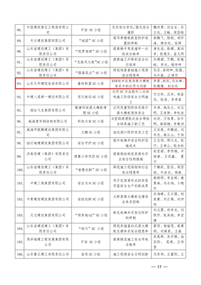 近日,從山東省建設(shè)工程(SC小組)優(yōu)秀創(chuàng)新成果競(jìng)賽辦公室傳來喜訊,天華實(shí)業(yè)集團(tuán)申報(bào)的《提高高層鋼管腳手架鋼板網(wǎng)一次安裝合格率》及《BIM技術(shù)在復(fù)雜高大模板體系中的應(yīng)用與創(chuàng)新》兩項(xiàng)成果,榮獲2023年山東省建設(shè)工程安全管理小組(SC小組)優(yōu)秀創(chuàng)新成果競(jìng)賽三等獎(jiǎng)。
