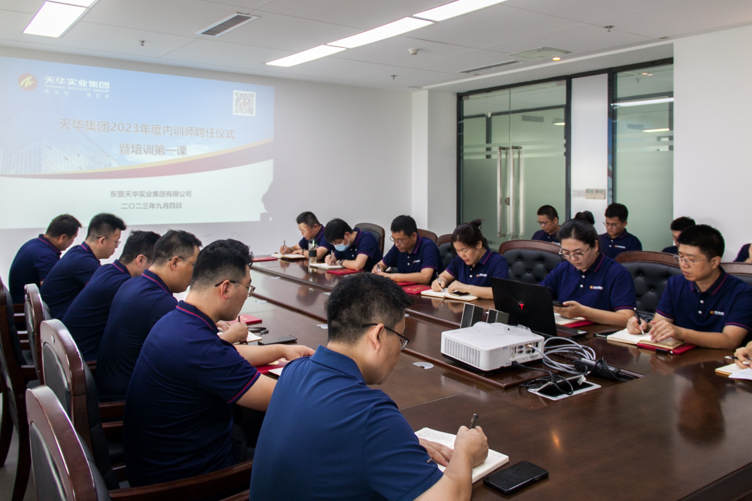 9月4日,天華實業(yè)集團(tuán)2023年度內(nèi)訓(xùn)師聘任儀式暨培訓(xùn)第一課在集團(tuán)公司舉行。集團(tuán)副總經(jīng)理徐帥菊出席儀式并發(fā)表開課寄語,集團(tuán)安全總監(jiān)商雷雷、各內(nèi)訓(xùn)師共20余人參加了活動。
