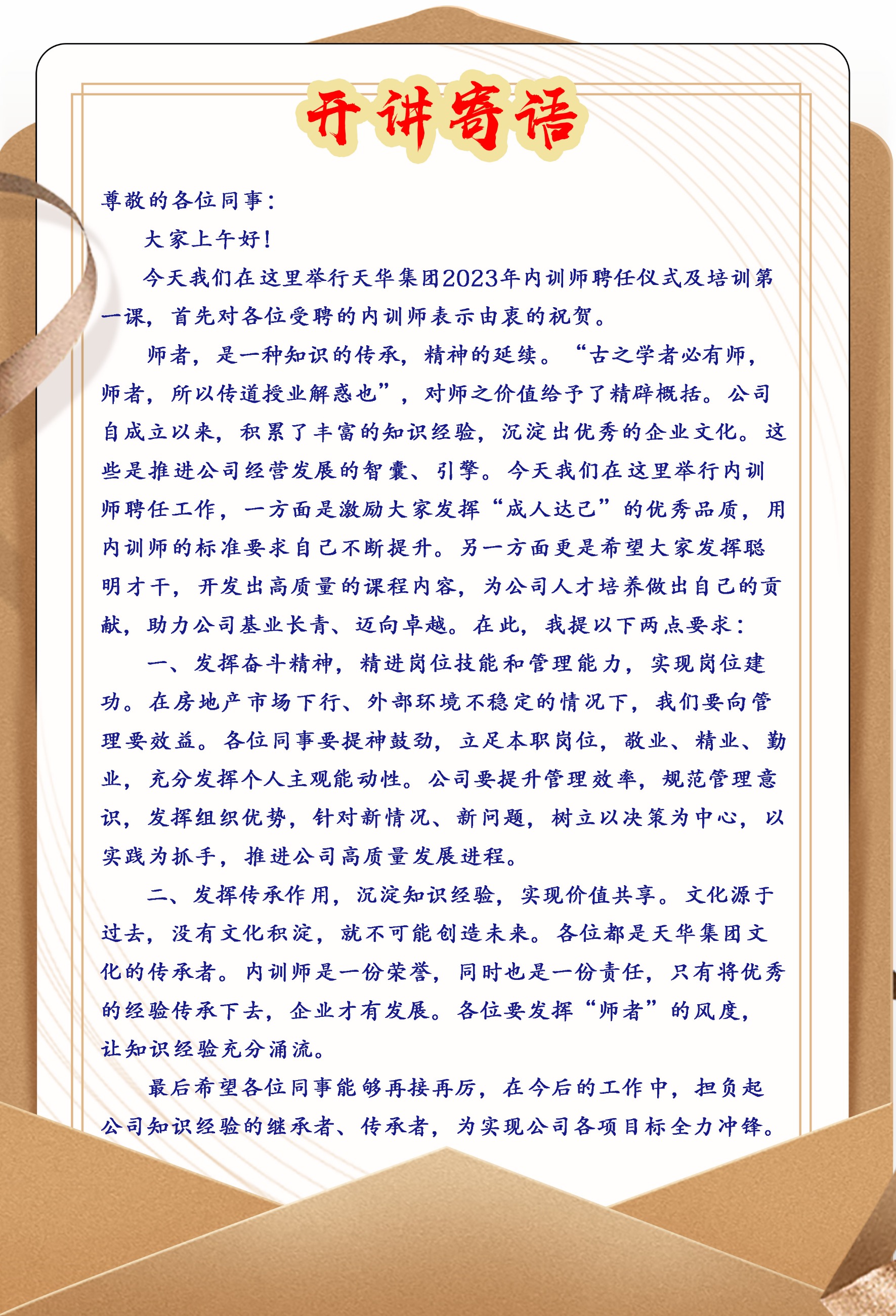 本批內(nèi)訓(xùn)師隊伍當(dāng)中,有職能部門的中層管理人員、專業(yè)技術(shù)人員,還有一線業(yè)務(wù)骨干。他們在集團(tuán)公司工作時間較長,對集團(tuán)公司充滿感情,在集團(tuán)業(yè)務(wù)發(fā)展中發(fā)揮了積極的引領(lǐng)作用,愿意為集團(tuán)的人才培養(yǎng)工作竭盡全力,可以說是一支高素質(zhì)的集團(tuán)內(nèi)訓(xùn)師隊伍,他們將以新姿態(tài)開啟新征程,開發(fā)精品課程,真誠講授每一堂課,立己達(dá)人、知行合一,有效傳承集團(tuán)公司的理念、知識和文化,為推動項目及公司高質(zhì)量發(fā)展做出更大貢獻(xiàn)!
