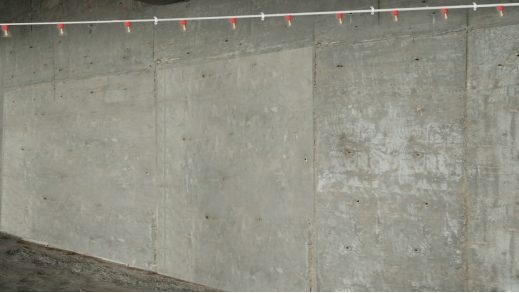核心筒結(jié)構(gòu)墻體裂縫控制施工工法,對傳統(tǒng)的施工工藝進行技術(shù)創(chuàng)新,能最大限度地提高高層混凝土核心筒結(jié)構(gòu)墻體裂縫合格率和杜絕高層混凝土核心筒結(jié)構(gòu)墻體混凝土裂縫,在同行業(yè)屬于技術(shù)領(lǐng)先。技術(shù)難點是核心筒墻體模板根部安裝角鋼,技術(shù)水平、安裝位置精度要求高,同時角鋼能夠重復使用,起到節(jié)材的作用;采用全天電子控制噴淋養(yǎng)護系統(tǒng)養(yǎng)護核心筒墻體混凝土,將噴淋管固定在核心筒墻體上面,通過地面電子控制噴淋系統(tǒng)進行養(yǎng)護,每30分鐘自動噴淋一次,每次2.5分鐘,既不會造成水源浪費,又能充分濕潤混凝土,全程做到自動無人化,節(jié)約人工、用水。