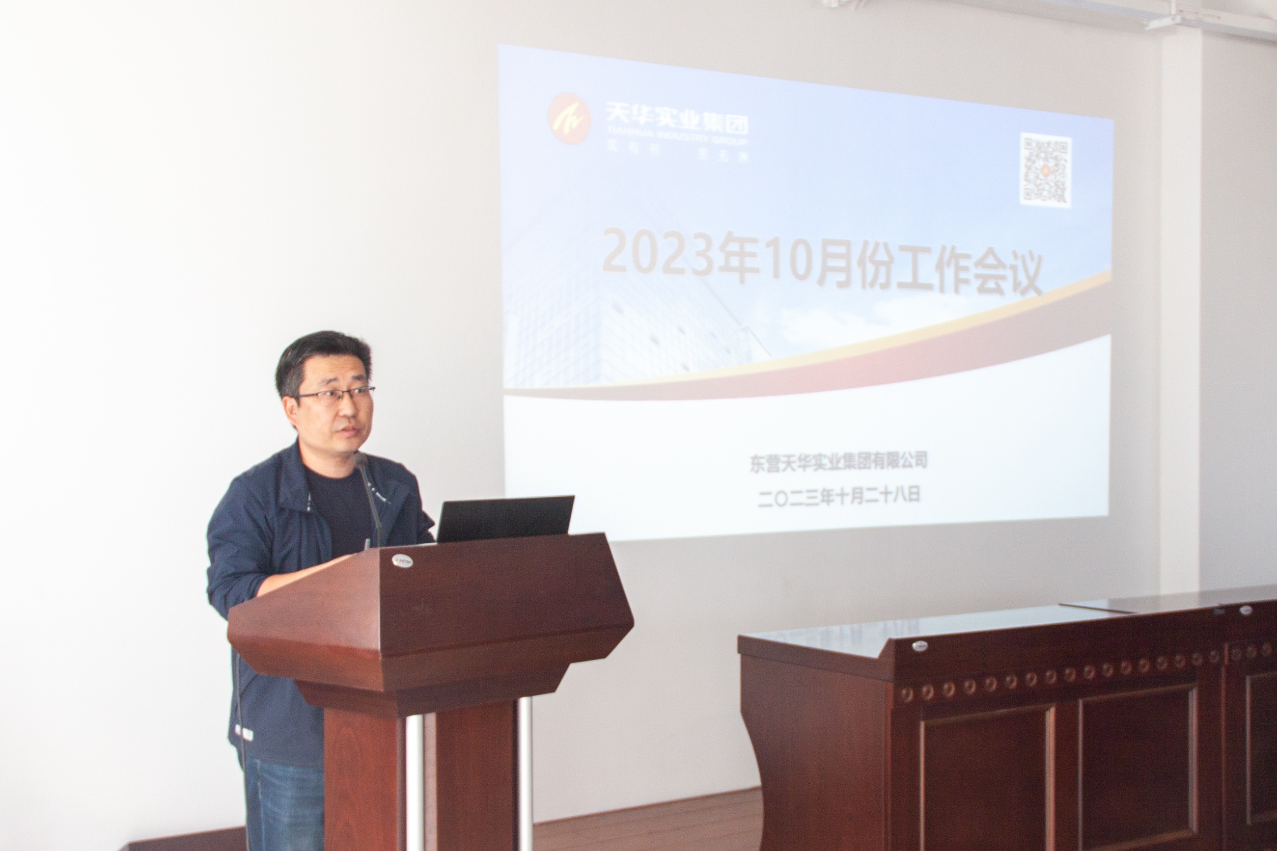 10月28日,天華實業(yè)集團10月份工作會議在集團公司六樓會議室召開,會議旨在回顧總結(jié)10月份工作完成情況,針對管理中存在的問題研究梳理相關重點工作。集團董事長、總經(jīng)理閆國亮出席會議,集團領導班子、各職能部室全體人員、分公司經(jīng)理、項目經(jīng)理參加會議。