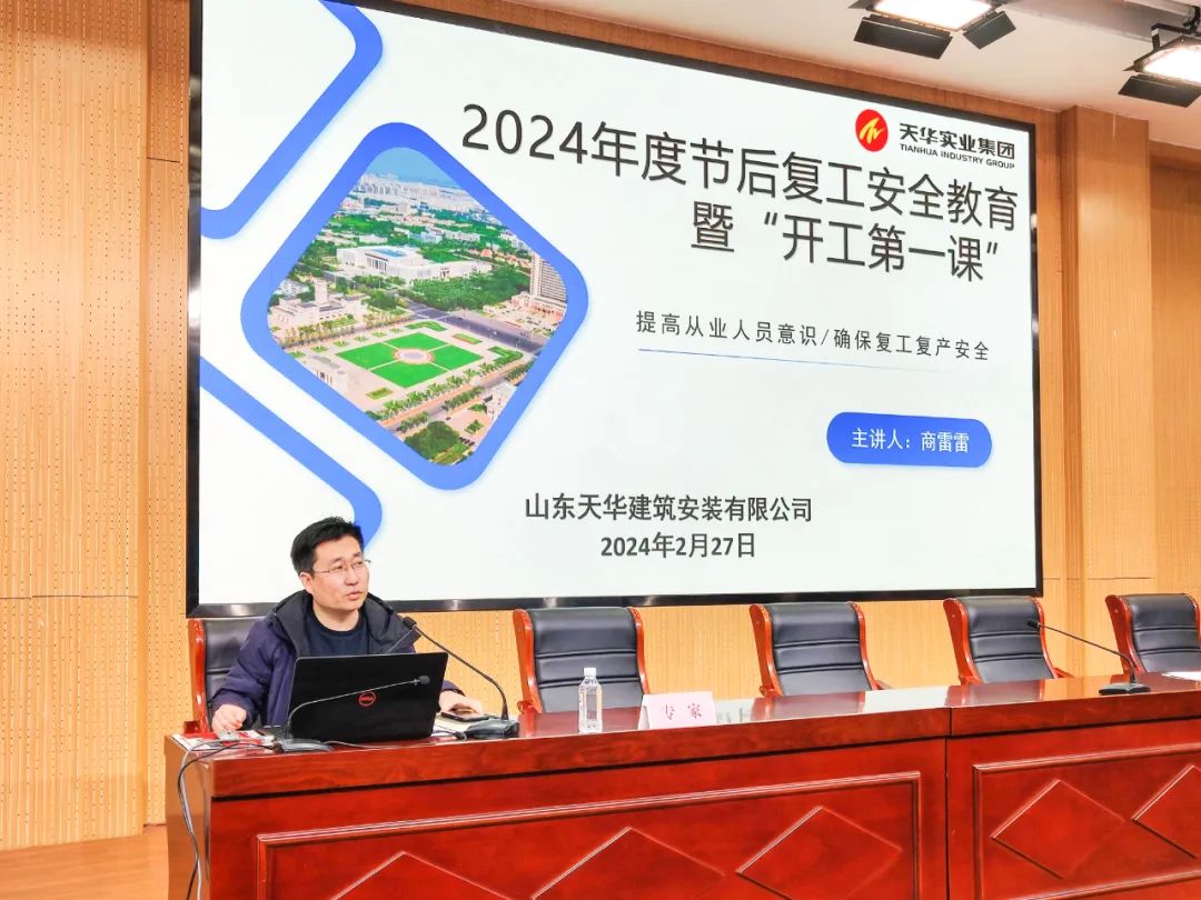 復(fù)工復(fù)產(chǎn),安全第一。為深入貫徹落實各級黨委政府關(guān)于安全生產(chǎn)重要決策部署,推動建筑工地順利復(fù)工復(fù)產(chǎn),確保全縣安全生產(chǎn)工作開好局、起好步,2月27日,利津縣住房與城鄉(xiāng)規(guī)劃建設(shè)局組織開展2024年全縣建筑施工領(lǐng)域“開工第一課”暨安全生產(chǎn)專題培訓(xùn)會議??h住房城建局黨組書記、局長季宗勇,施工安全分管副局長徐星春,各鄉(xiāng)鎮(zhèn)街道城建分管負責(zé)同志,施工安全監(jiān)管人員和建筑業(yè)企業(yè)、在建項目主要負責(zé)人、總監(jiān)、安全員等共計180余人參加會議。天華實業(yè)集團安全總監(jiān)商雷雷應(yīng)邀出席并授課。
