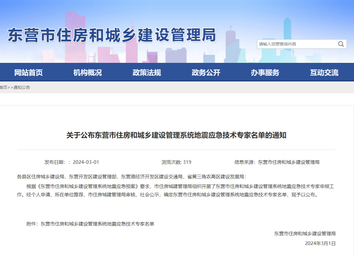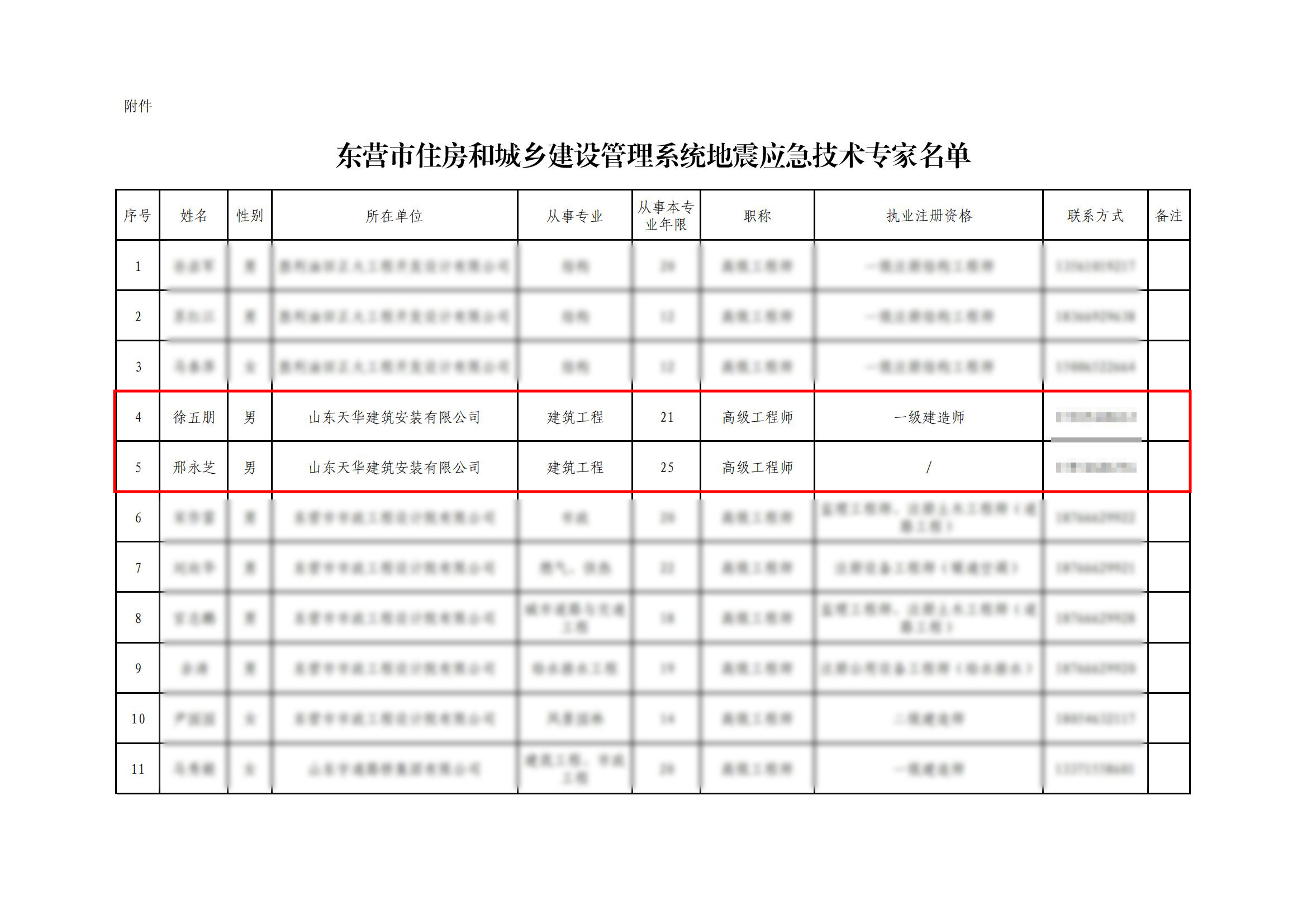 為貫徹落實國家、省、市及《東營市住房和城鄉(xiāng)建設管理系統(tǒng)地震應急預案》等法律法規(guī)和有關規(guī)定,近日,東營市住房城建管理局成立東營市住房和城鄉(xiāng)建設管理系統(tǒng)地震應急技術專家?guī)?。?jīng)公開征集、自主申報、材料審查等程序,天華實業(yè)集團邢永芝、徐五朋成功入選“東營市住房和城鄉(xiāng)建設管理系統(tǒng)地震應急技術專家?guī)臁薄?/p>