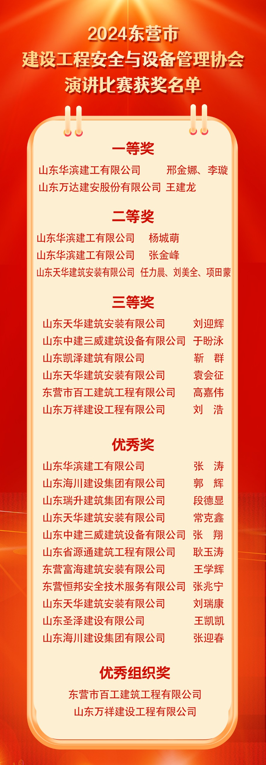 安全系于心,責(zé)任落于行。為認真貫徹落實各級主管部門工作部署,強化宣傳教育,提高各協(xié)會會員單位從業(yè)人員安全意識,廣泛營造安全生產(chǎn)氛圍,4月20日,東營市建設(shè)工程安全與設(shè)備管理協(xié)會在天華實業(yè)集團舉辦“讓責(zé)任在心中落地,讓安全為生命護航”主題演講比賽,助力企業(yè)安全文化建設(shè)。