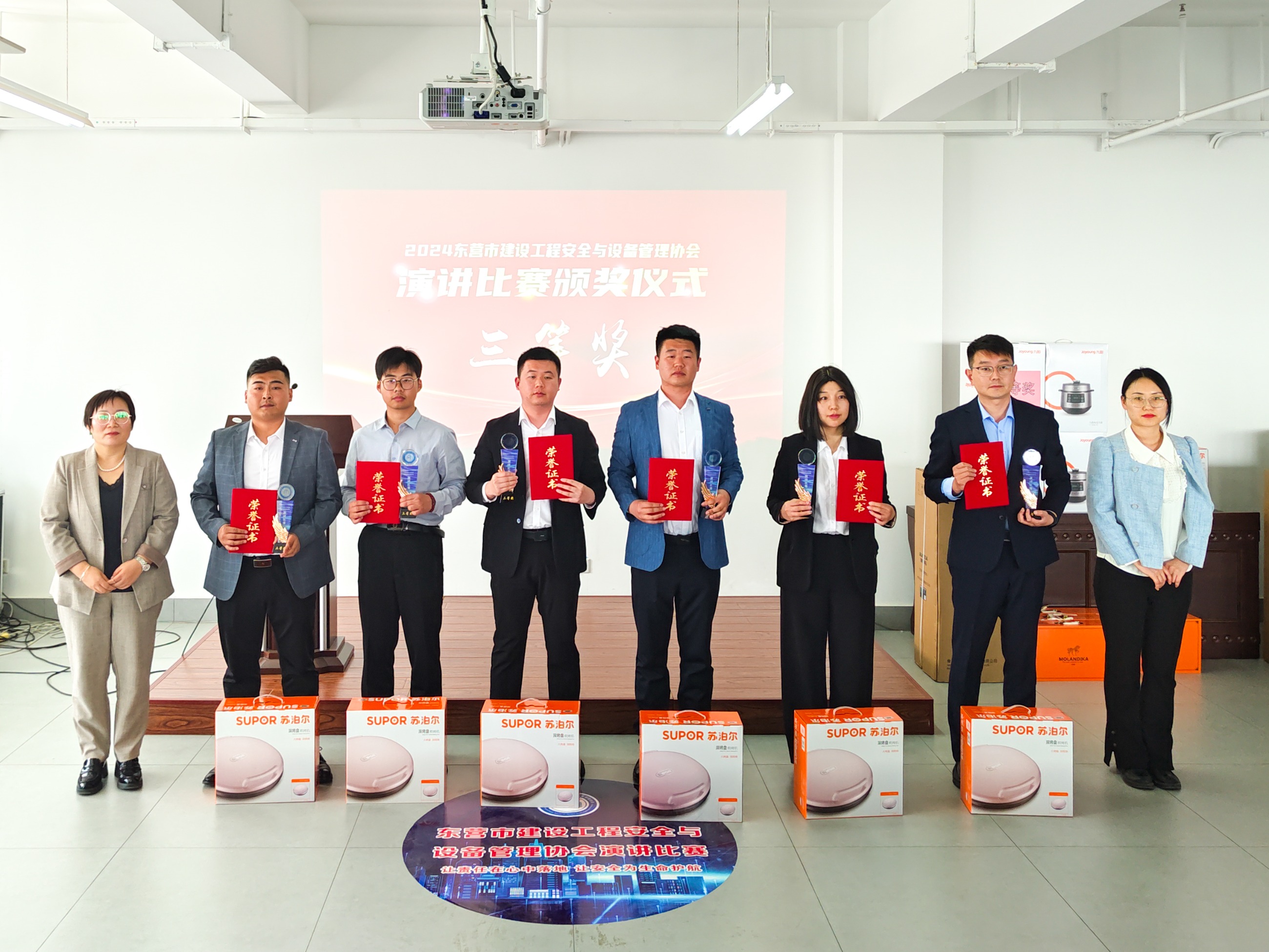 山東天華建筑安裝有限公司安全總監(jiān)商雷雷為優(yōu)秀組織獎獲得者頒發(fā)了獎牌。山東華濱建工有限公司經(jīng)理李成祥,山東萬達建安股份有限公司安全總監(jiān)王凱,山東海川建設(shè)集團有限公司副總經(jīng)理馬曉霞、山東省源通建筑工程有限公司安全科副科長韓芳慶分別為獲得一、二、三等獎的選手頒發(fā)了榮譽證書、獎杯和獎品。山東凱澤建筑有限公司安全總監(jiān)程偉晨、山東中建三威建筑設(shè)備有限公司副總經(jīng)理李建輝、山東金達源建工有限公司副總經(jīng)理韓冬、東營富海建筑安裝有限公司副總經(jīng)理孫良志為優(yōu)秀獎選手頒發(fā)了榮譽證書和獎品。