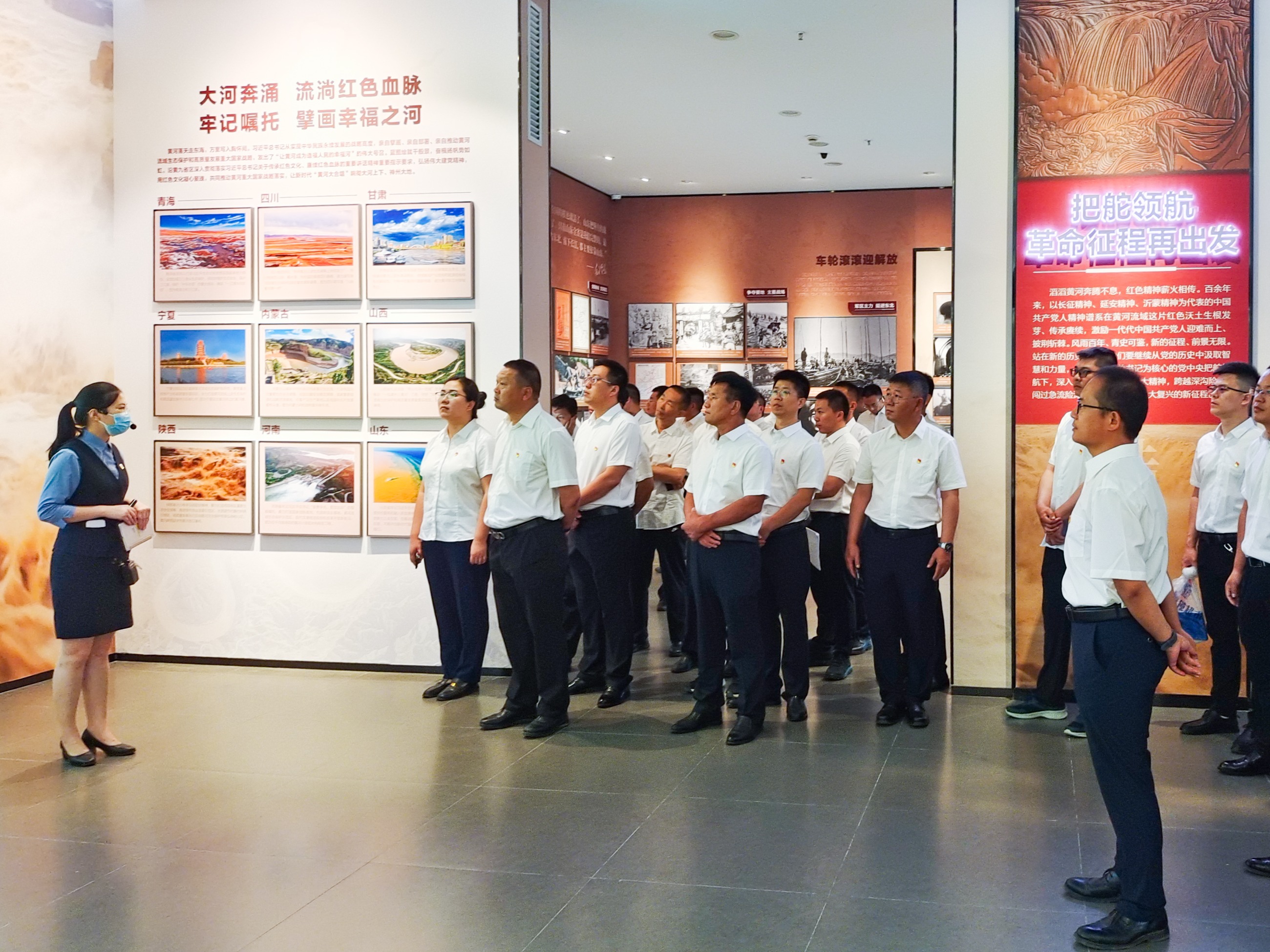 在中心解說(shuō)員的帶領(lǐng)下,黨員們先后參觀了中共百年黨史展、東營(yíng)地方黨史展、東營(yíng)黨建工作展,全面了解中國(guó)共產(chǎn)黨走過(guò)的光輝歷程,感悟中國(guó)共產(chǎn)黨領(lǐng)導(dǎo)東營(yíng)人民艱苦卓絕、波瀾壯闊的奮斗歷程,身臨其境接受黨史教育和紅色文化熏陶。