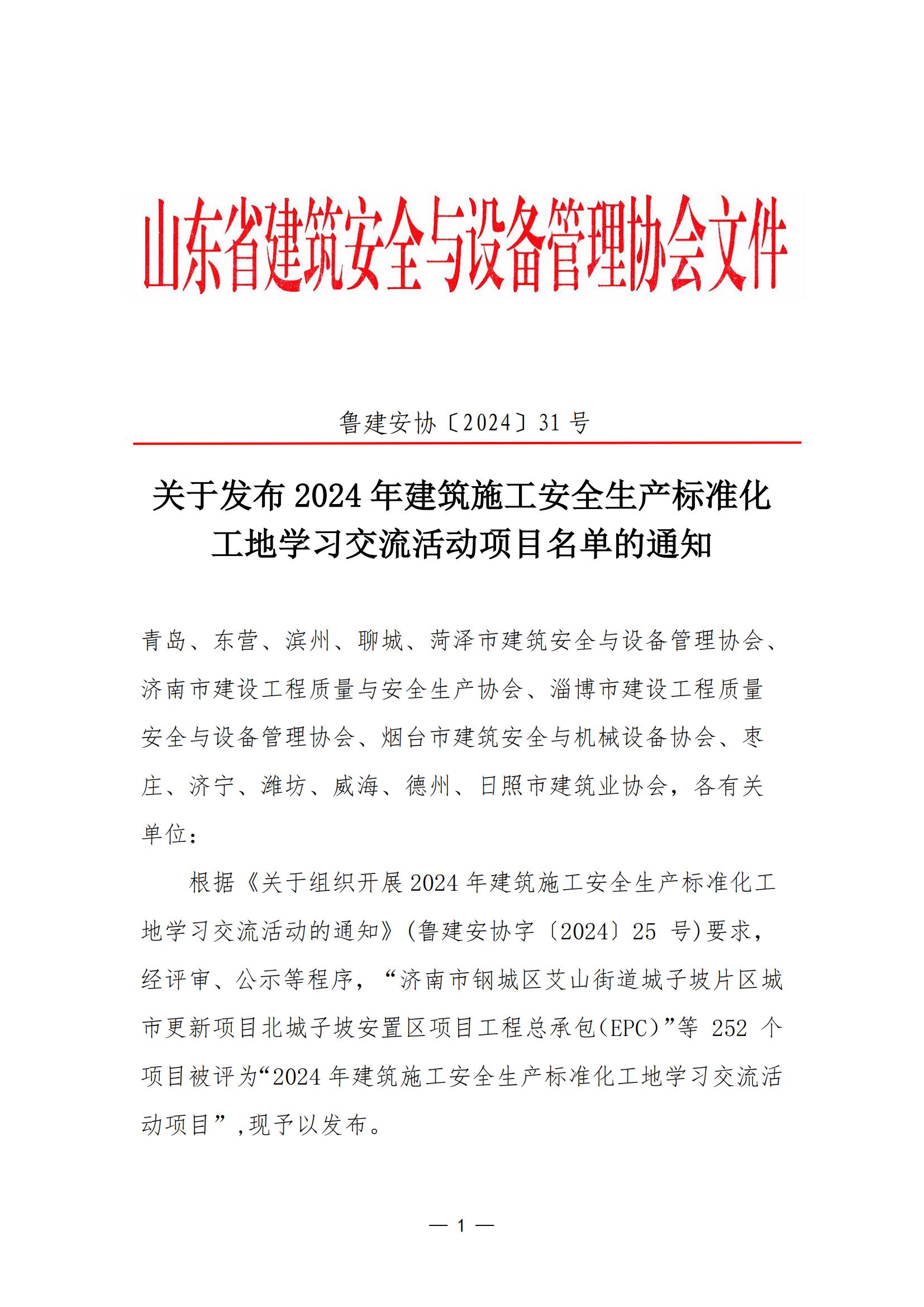 山東省建筑施工安全生產(chǎn)標準化工地學(xué)習(xí)交流活動項目是省內(nèi)建筑行業(yè)安全文明施工方面的最高榮譽,對項目安全生產(chǎn)預(yù)防措施及管理工作的質(zhì)量、職業(yè)健康安全管理體系的運行、安全文明施工等綜合管理水平有著很高的要求。代表著項目安全文明標準化建設(shè)管理水平達到了行業(yè)領(lǐng)先水平,獲獎項目可在全省范圍內(nèi)推廣學(xué)習(xí)交流。
