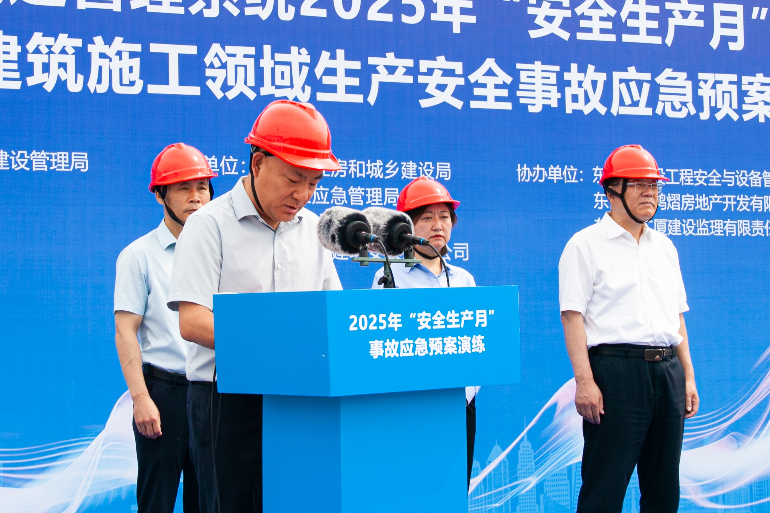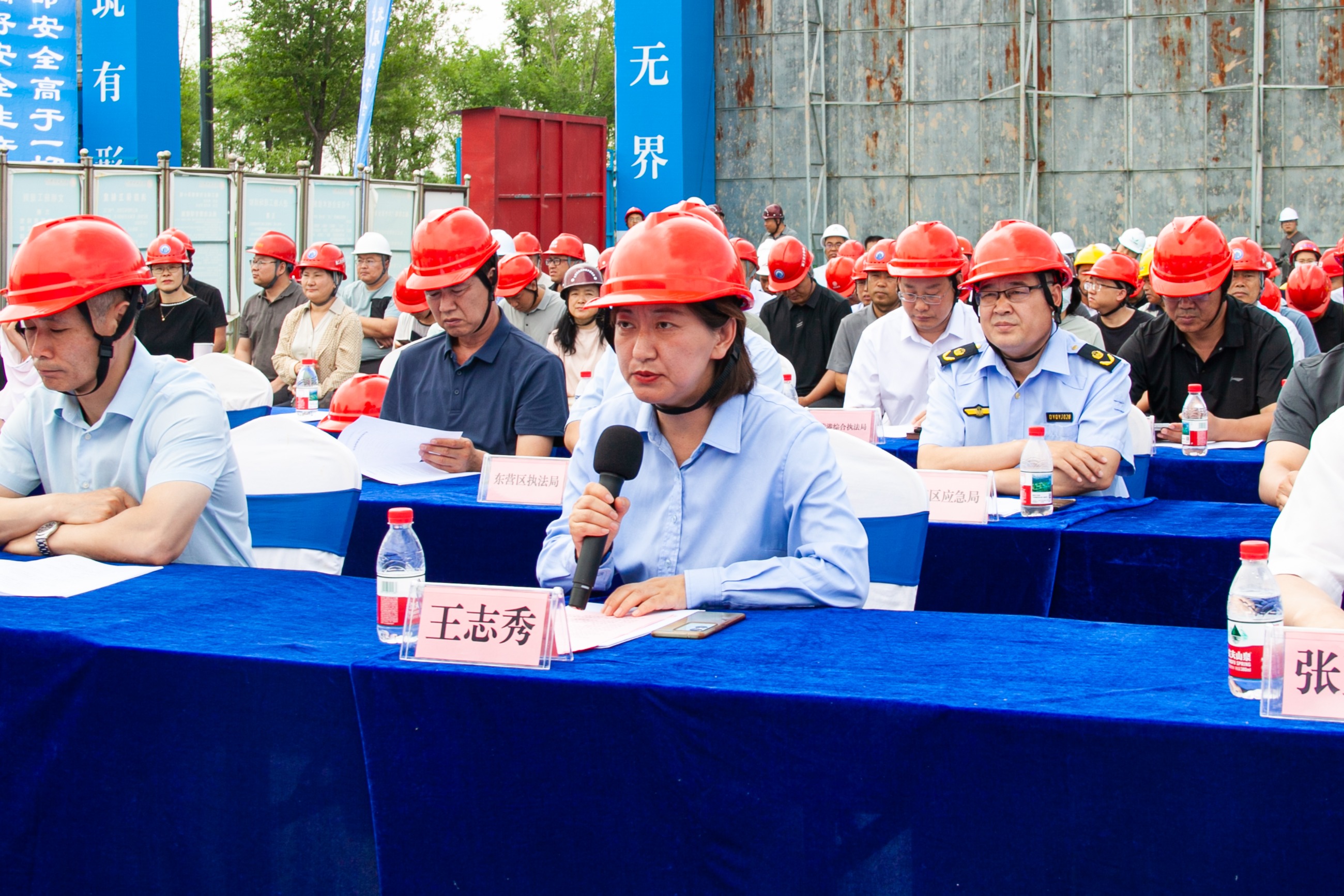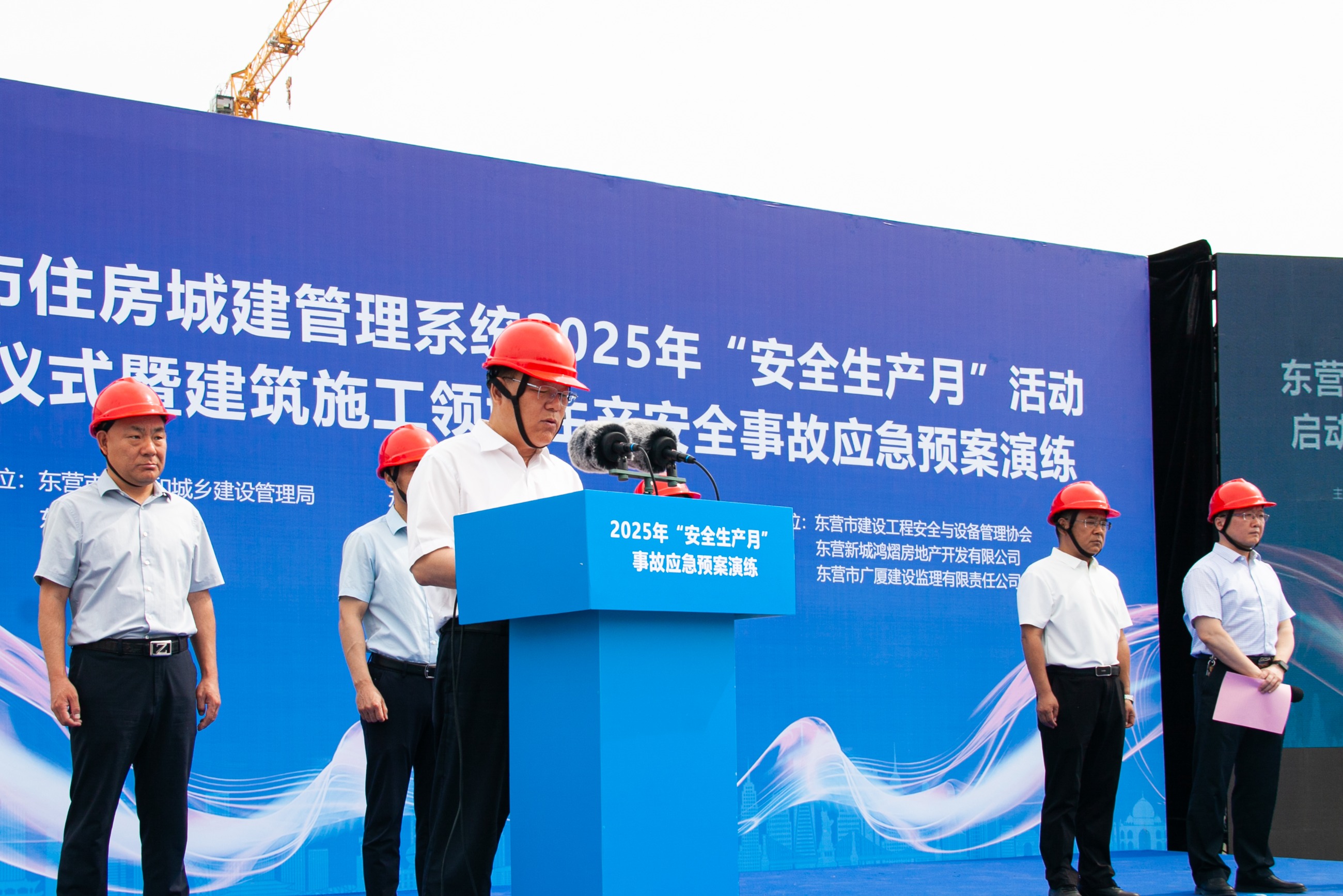 中共東營市住房和城鄉(xiāng)建設(shè)管理局黨組書記張玉明,東營區(qū)委常委、副區(qū)長蓋濱,市住建局黨組成員、副局長俞海泓,市市域治理運行管理中心副主任王志秀,市建設(shè)工程質(zhì)量安全中心主任杜宇,東營區(qū)住房和城鄉(xiāng)建設(shè)局黨組書記、局長徐文明,東營市建筑業(yè)聯(lián)合會會長、天華實業(yè)集團董事長閆國亮出席活動。市住建局有關(guān)科室單位負責(zé)同志,各縣區(qū)(市屬開發(fā)區(qū)、省黃三角農(nóng)高區(qū))住建管理部門及有關(guān)科室、質(zhì)量安全監(jiān)管機構(gòu)主要負責(zé)同志,建筑業(yè)企業(yè)代表,部分在建房屋市政項目參建單位負責(zé)人參加。