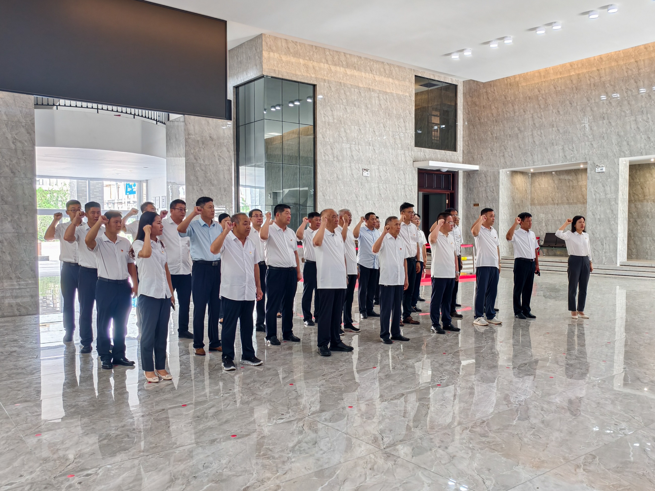 觀影結(jié)束后,在紀(jì)念館內(nèi)莊嚴(yán)肅穆的黨旗前,全體黨員整齊列隊(duì),舉起右拳,重溫入黨誓詞,高昂、奮進(jìn)、莊重的聲音,表達(dá)了為共產(chǎn)主義事業(yè)奮斗終身、永葆黨員先進(jìn)性的堅(jiān)定信念。那一聲聲莊嚴(yán)的宣誓回蕩耳邊、震撼心田,激勵(lì)著全體黨員干部在新征程上不斷凝心聚力、時(shí)刻沖鋒向前。