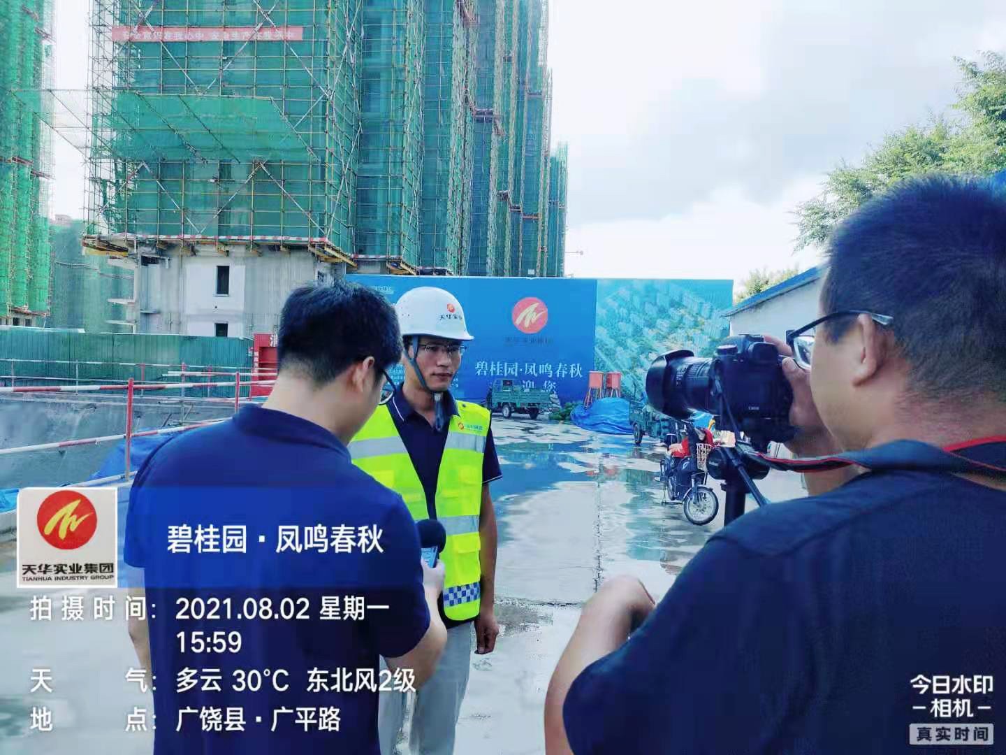 本報訊(項目部 蓋建峰)8月2日,廣饒縣住房和城鄉(xiāng)建設局協(xié)同廣饒電視臺蒞臨天華實業(yè)集團廣饒碧桂園·鳳鳴春秋項目,對施工現(xiàn)場揚塵治理情況進行專題報道。