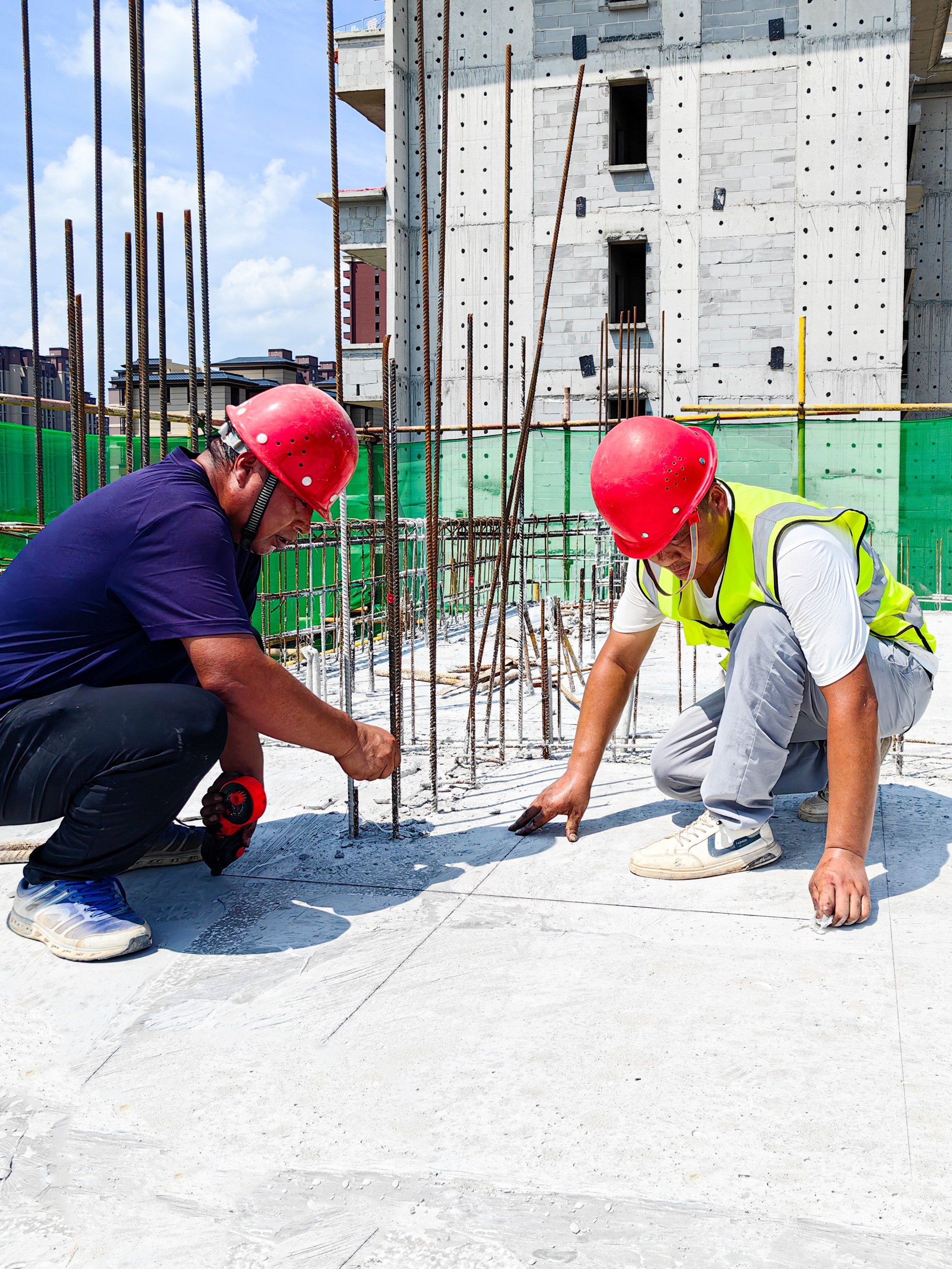剛才還是炎炎烈日,頃刻便是狂風(fēng)暴雨,建筑人腳上的鞋子總是沾滿泥濘,濕透的工服,無阻大步前行。他們,與烈日較勁,與高溫抗衡,酷暑難耐仍不忘精益求精,他們常說:堅持不懈、使命必達(dá)是匠人必備的素養(yǎng)!