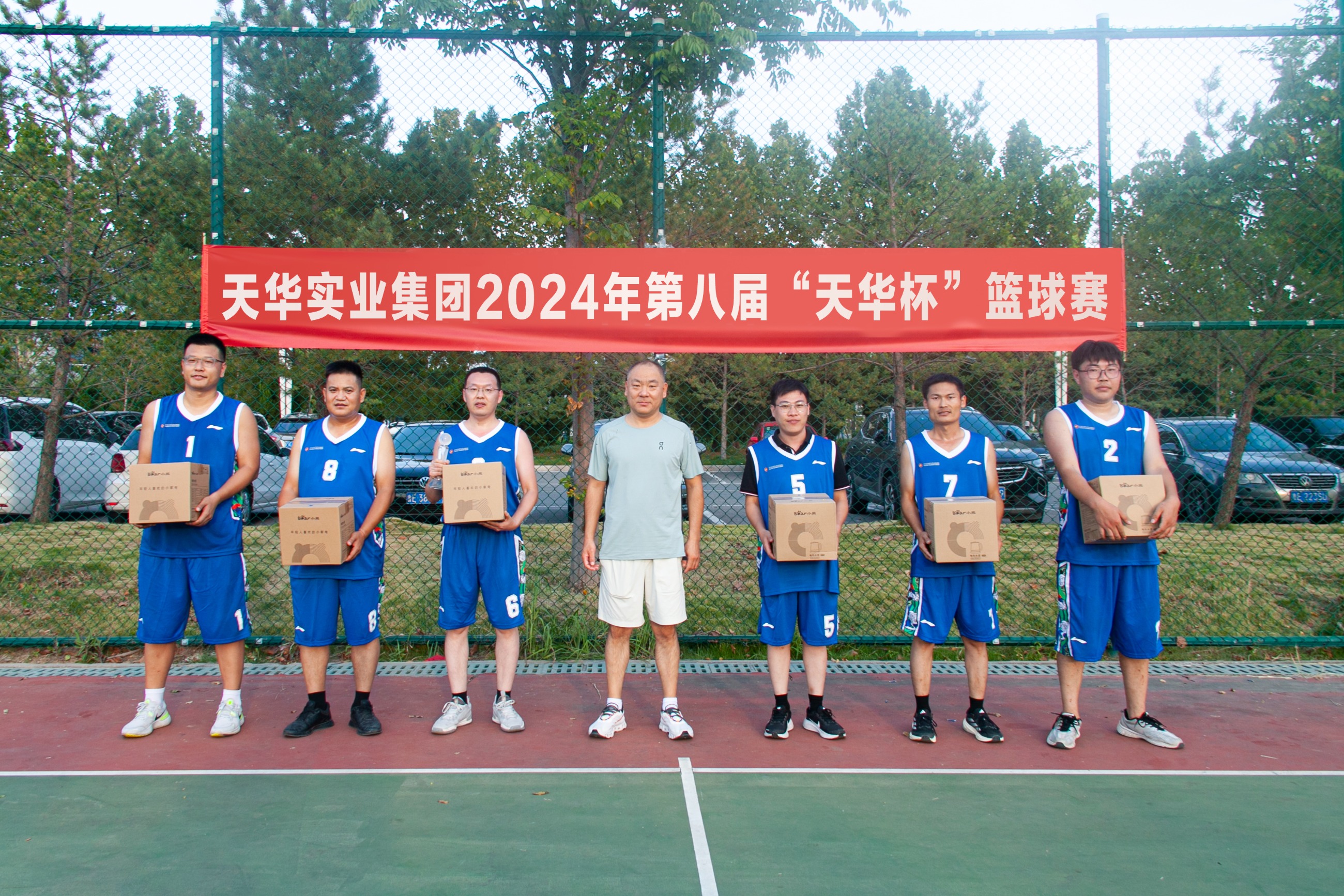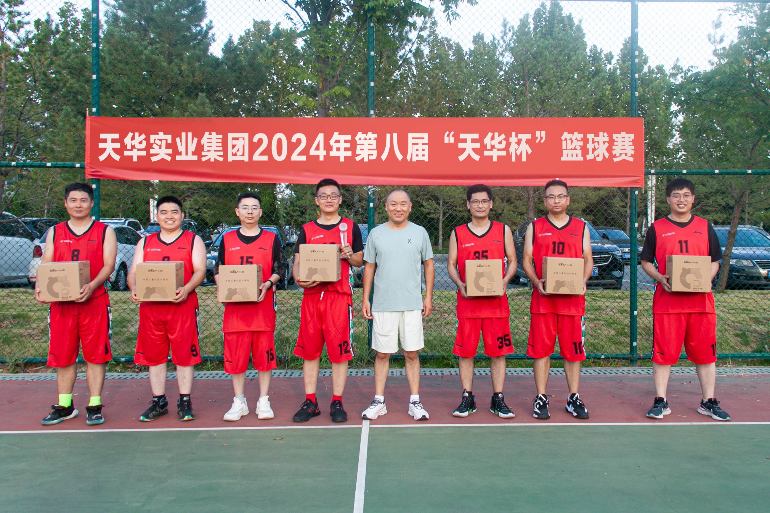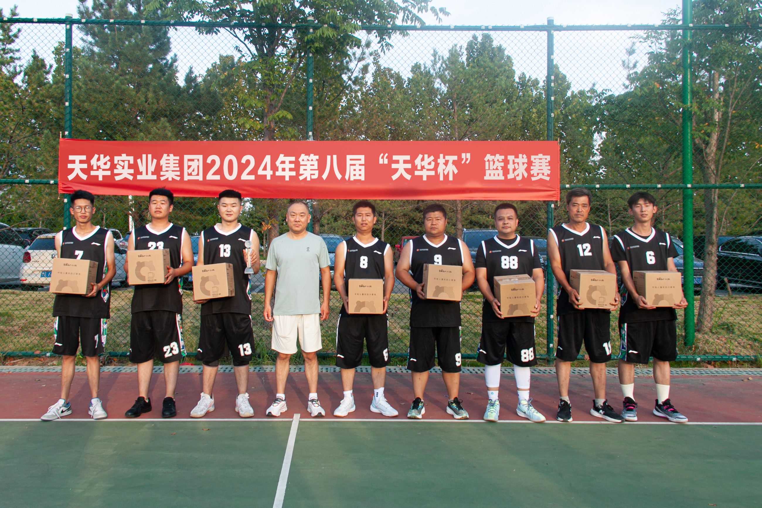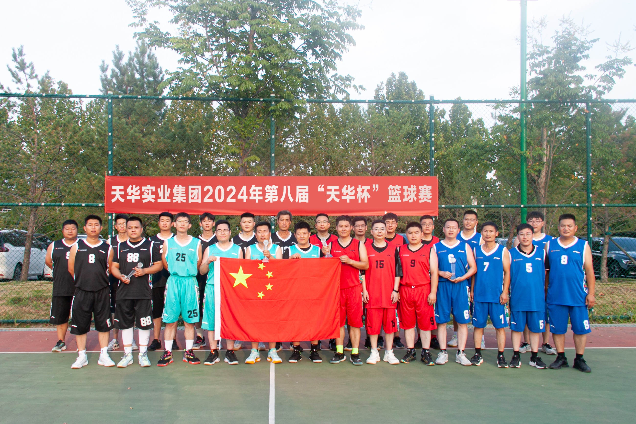 為慶祝中華人民共和國成立75周年,進(jìn)一步豐富廣大員工業(yè)余文化生活,充分展示天華員工傳統(tǒng)體育特色和運(yùn)動發(fā)展水平,9月28日,天華實(shí)業(yè)集團(tuán)第八屆“天華杯·籃球賽”在奧體中心籃球場成功舉辦。集團(tuán)部室及各分公司組成四支參賽隊(duì)伍,在精彩絕倫的對決中,展現(xiàn)了他們的激情與團(tuán)結(jié)精神。集團(tuán)董事長及相關(guān)高管出席活動。