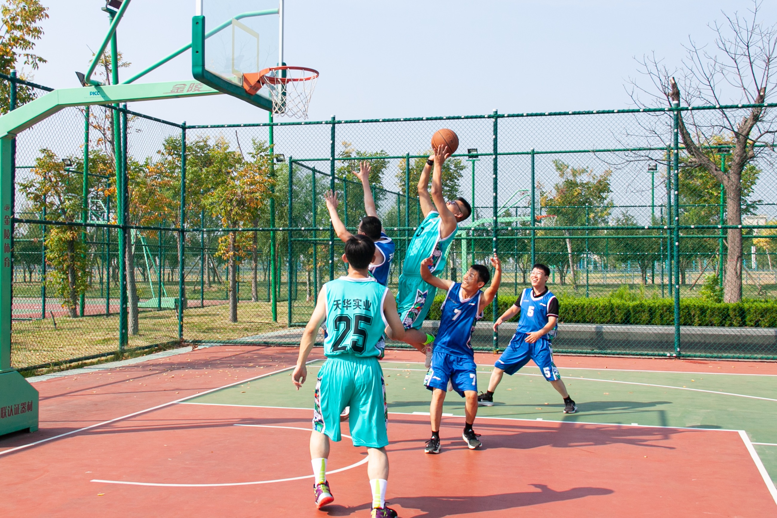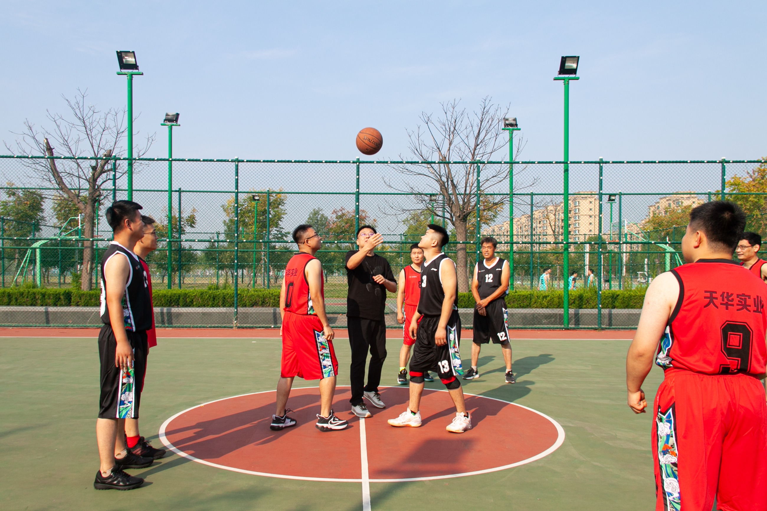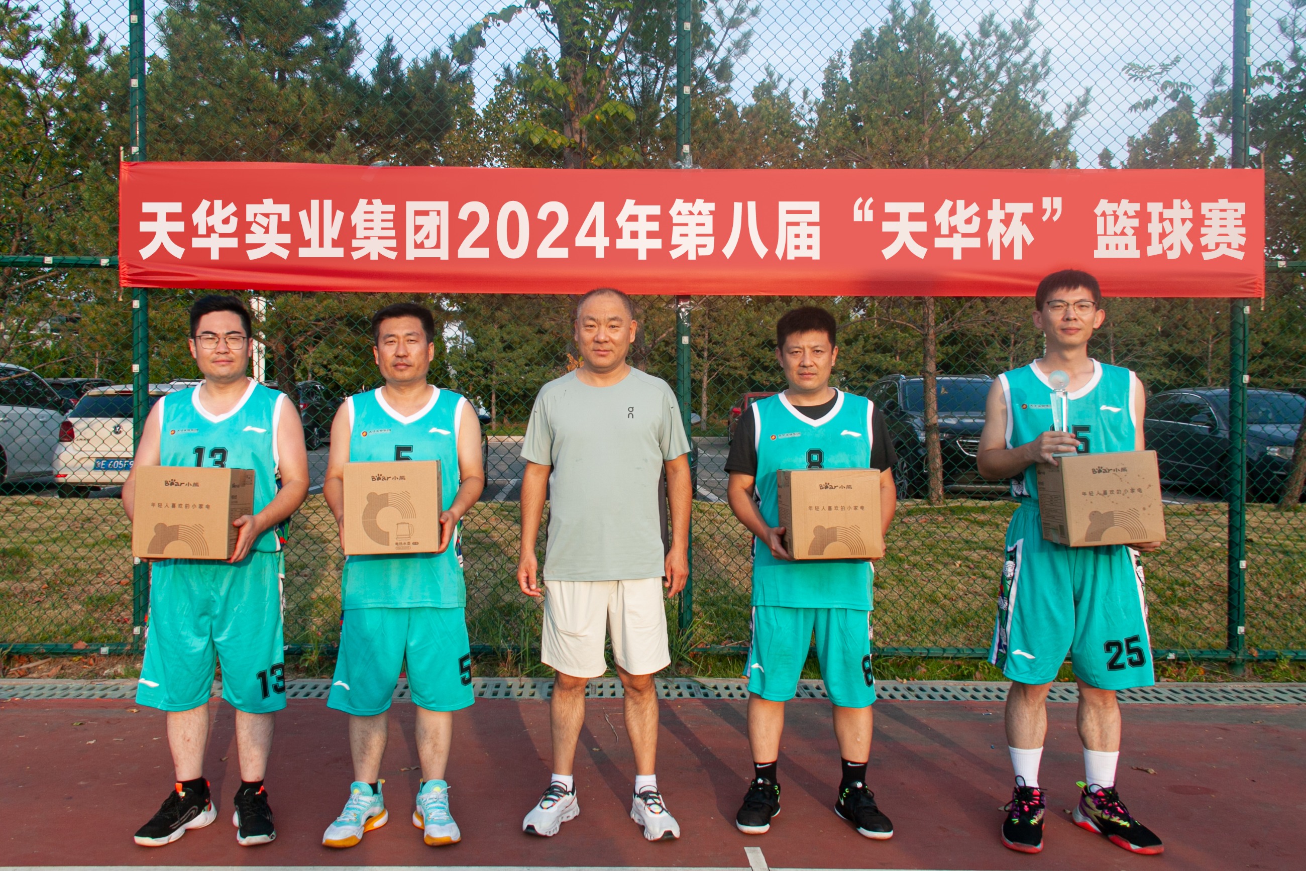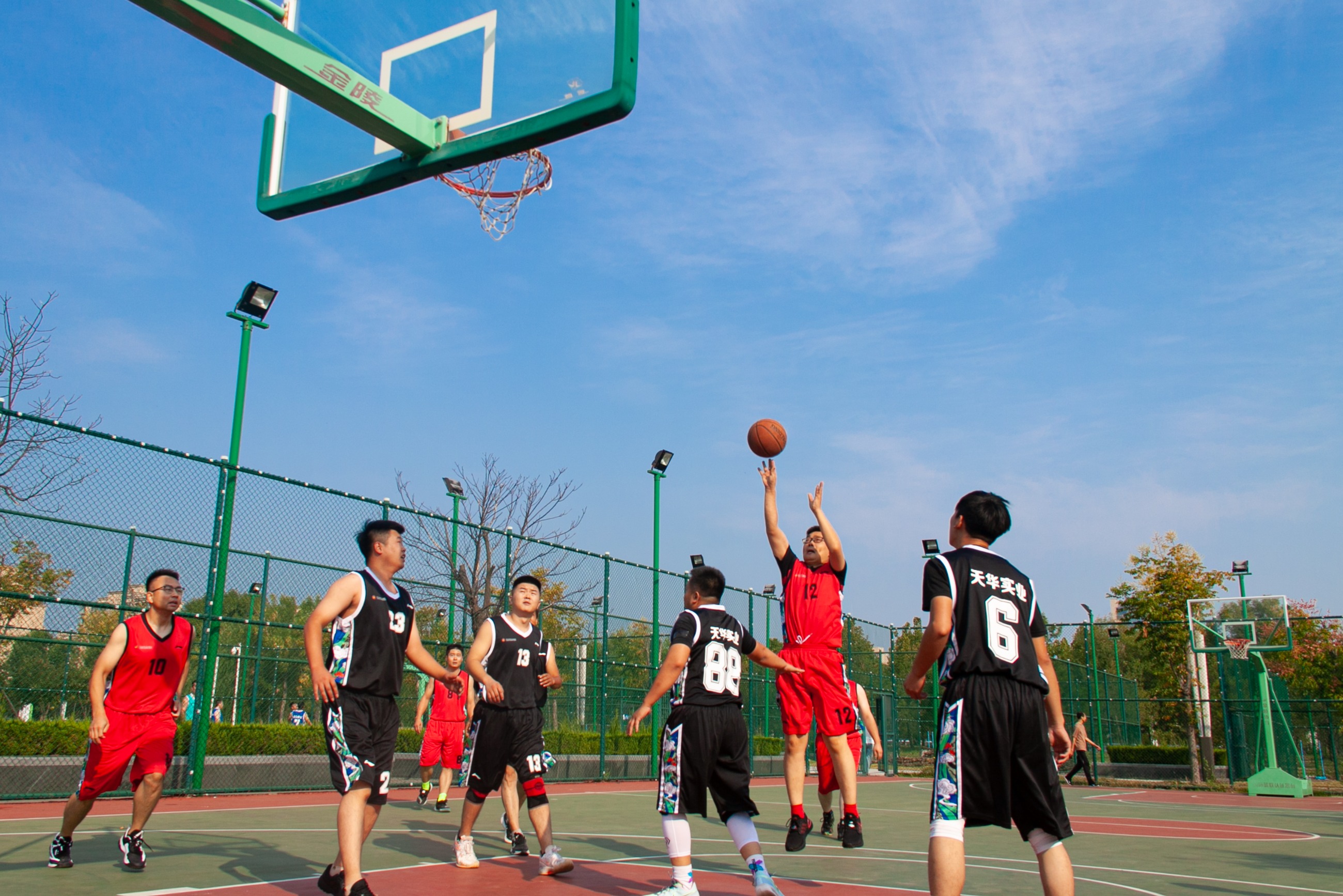 為慶祝中華人民共和國成立75周年,進(jìn)一步豐富廣大員工業(yè)余文化生活,充分展示天華員工傳統(tǒng)體育特色和運(yùn)動發(fā)展水平,9月28日,天華實(shí)業(yè)集團(tuán)第八屆“天華杯·籃球賽”在奧體中心籃球場成功舉辦。集團(tuán)部室及各分公司組成四支參賽隊(duì)伍,在精彩絕倫的對決中,展現(xiàn)了他們的激情與團(tuán)結(jié)精神。集團(tuán)董事長及相關(guān)高管出席活動。